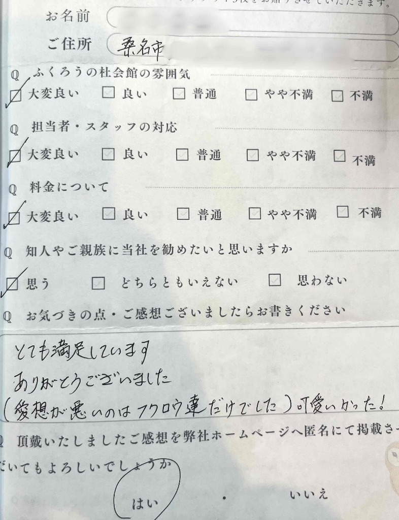 【NEW】お客様の声(桑名市在住 ご利用式場:ふくろうの杜)