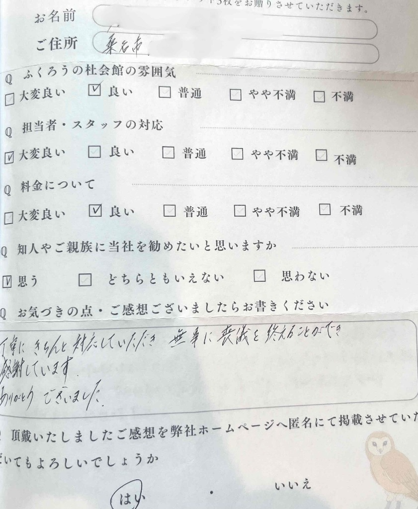 【NEW】お客様の声(桑名市在住 ご利用式場:ふくろうの杜)